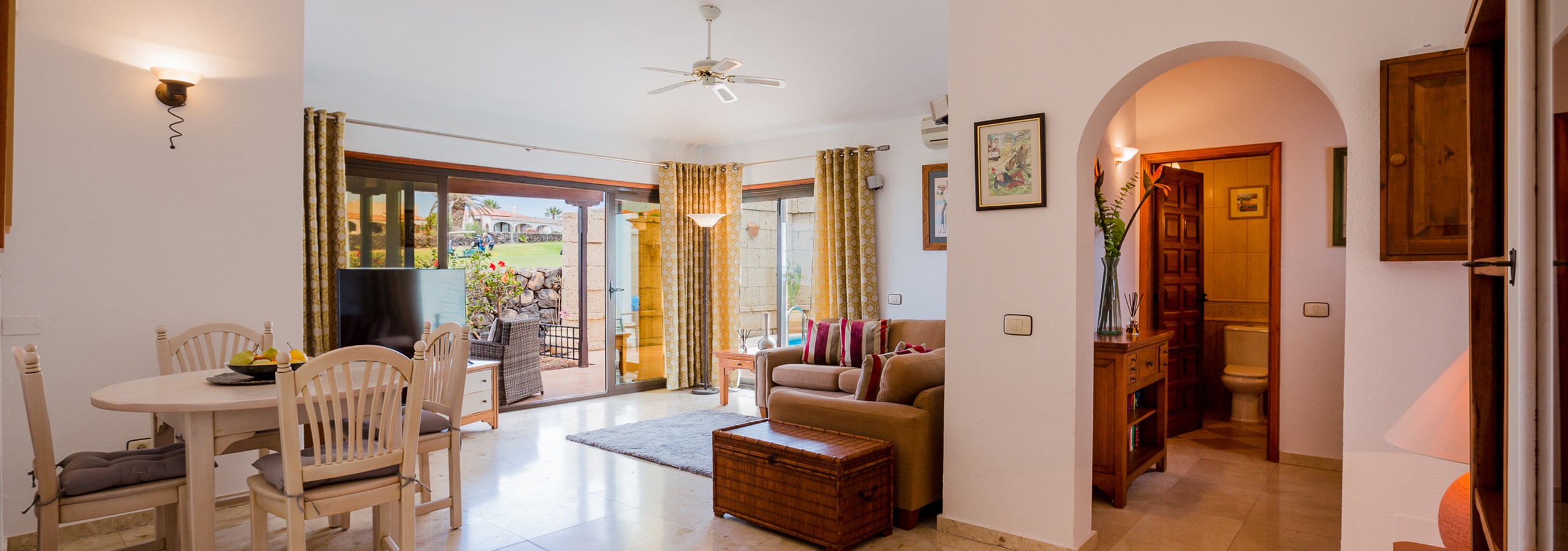 Upon entering the villa, a welcoming hallway leads you to a