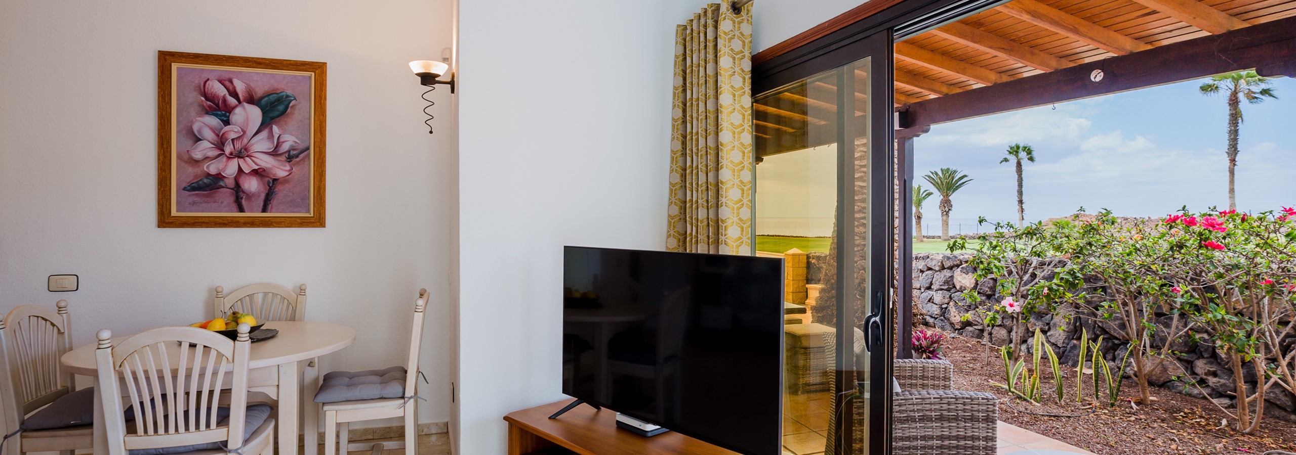 The villa is excellent - it's comfortable, clean and had everything we needed for a relaxing week. David met us when we arrived and checked us in. He's very friendly and helpful, showed us where everything is and how it all worked. The kitchen is well stocked with equipment, the living room is comfortable, the outside space has a choice of seating/sun beds, and the pool is lovely. The beds were comfortable enough. Towels were soft, and there were pool towels, too. Hot water plentiful and, although the water pressure isn't that high, the showers were fine. The smart TV has about 3 million channels and we signed into our streaming accounts without a problem. The WiFi is fine. There's a nice library of books left by previous guests, too. Note, the villa is right next to a golf course. You do need a car if you want to get around, as there isn't much in the local area. Mercadona will deliver food, though (David sent us information about that with our booking). There is an Iceland supermarket that sells British food in La Chafira, too. The San Blas shopping centre (about a 10 min drive away) has a range of cafes, restaurants and shops. In summary, I really recommend Villa Palm and we'd definitely stay there again.