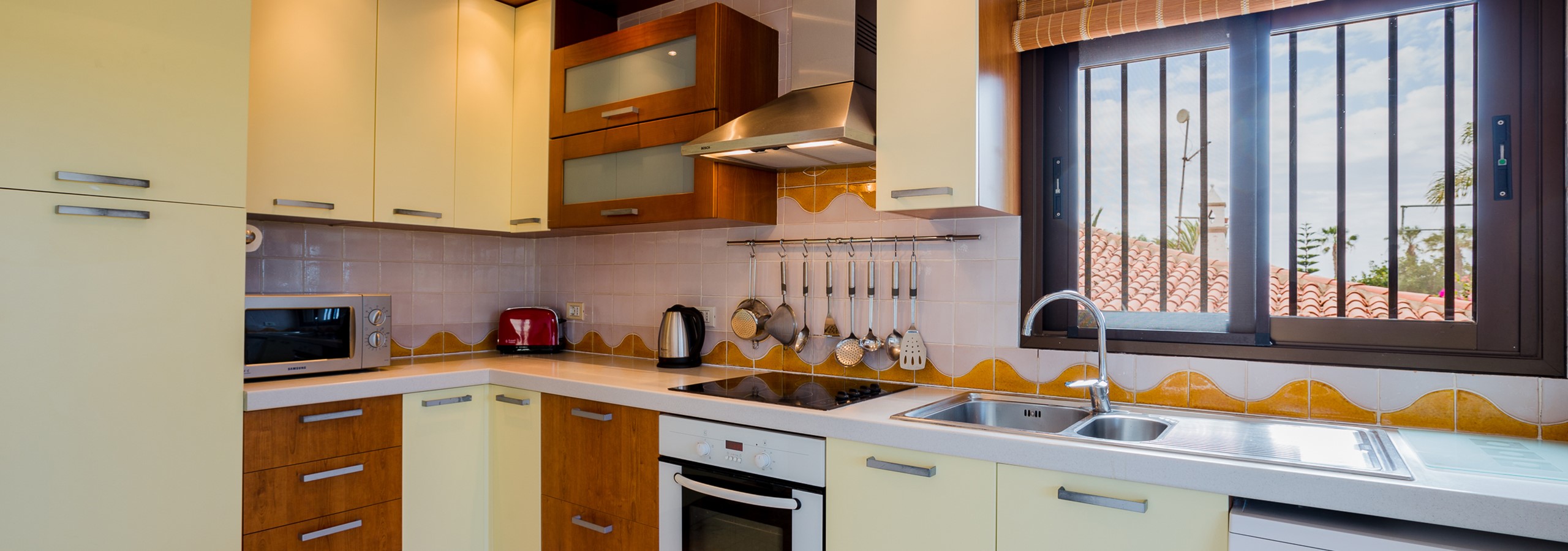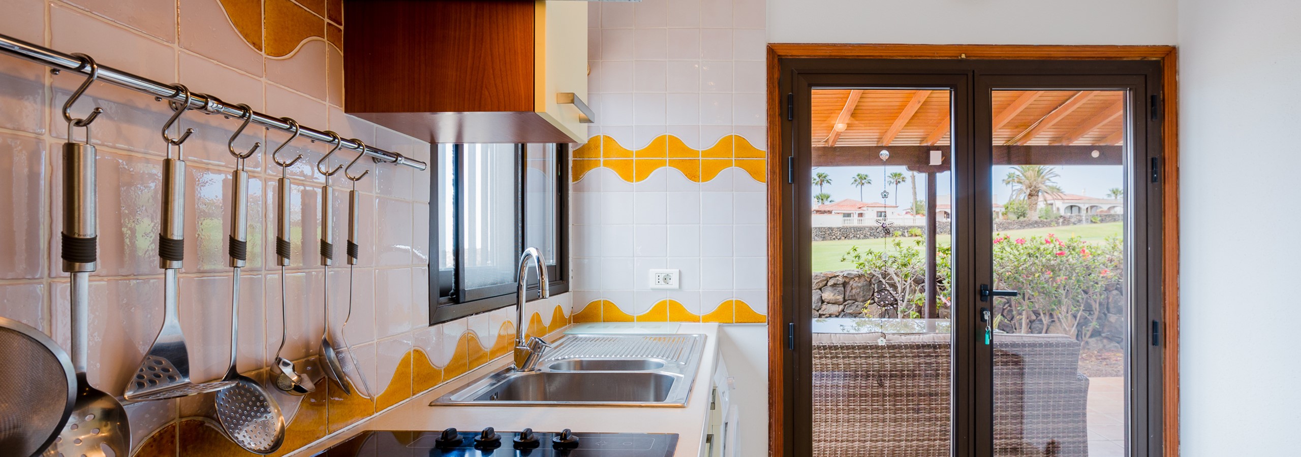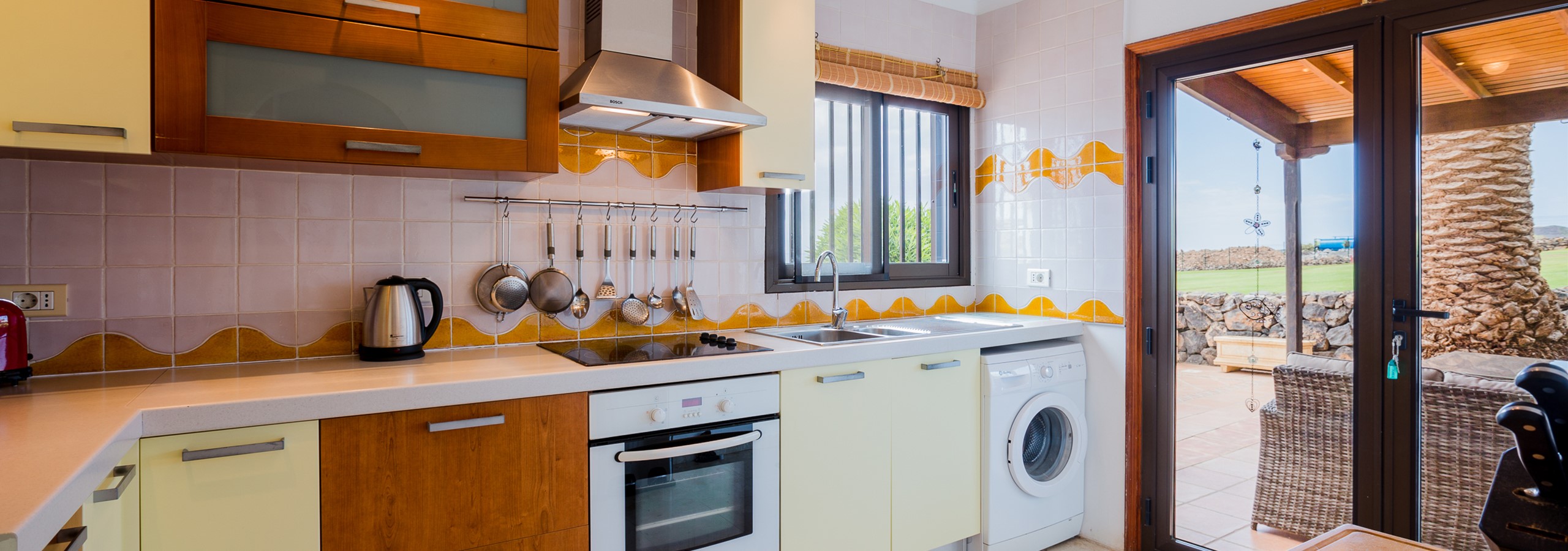 the terraces and gardens. The villa boasts a fully equipped kitchen