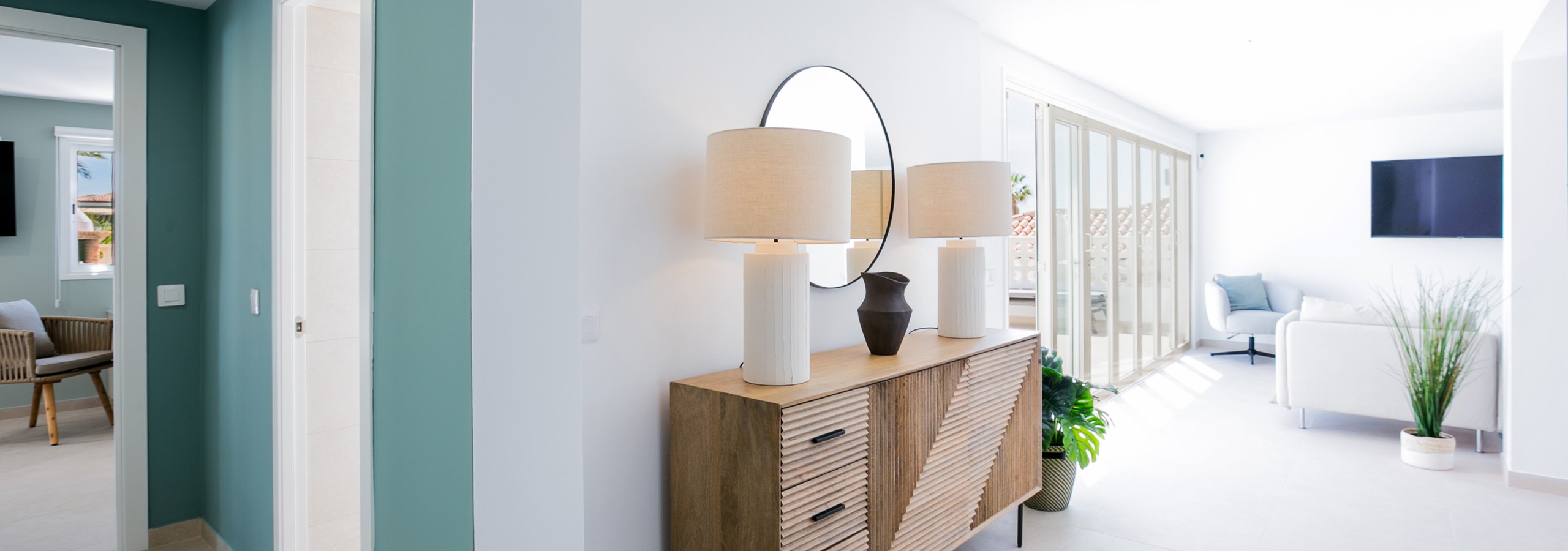 Villa Vista is only 15 minutes from Tenerife South airport. Upon arrival, the location sets the tone. The house is in a quiet street nestled within a golf course community. After entering the front gate, there is an immediate sense of calm. The pale, warm tiles and white walls are the perfect backdrop to the lush colours and textures of the plants surrounding the home. Once you turn the corner you are greeting by a lovely outdoor seating area covered by a pergola and rooftop deck, an enticing private pool, the golf course to the left and a view of the sea straight ahead. You won't find PVC loungers on this lux terrace. The outdoor furniture is comfortable, contemporary, light and crisp. The newly renovated home is just that - a home. Accordion patio doors open the entire living space onto the terrace creating a massive indoor/outdoor space. The décor is light with a coastal feeling. There are lovely throws for cool evenings and even stylishly designed games like connect four, cards and Xs and Os. You will feel at home with a wine fridge, a pod coffee machine and dishwasher. The kitchen is dreamy in the late afternoon when the sun comes through the windows at the front of the house with sunlight pouring past your very own lime tree! The bedrooms and shower rooms are serene and luxurious - all with comfortable super-king beds, nice linens, fluffy bath towels and aircon. The primary bedroom opens onto a covered seating area and is steps away from the pool. The dressing area even has a Dyson hairdryer! The attention to detail and comfort has not been overlooked. There is a costal path along the sea front with many restaurants and cafes within a 15-20 minute walk. One of our favourite restaurants that we went to three times over our stay (La Mesa) is only a 6 minute walk away. San Blas is a small village with several restaurants, a grocery shop and a few bars. It is a 20-30 minute walk along the coast. Tapas Pata de Oro is definitely worth seeking out. Both the food and service are excellent! David, the property manager, met us at the house to answer any questions and is available by phone or text if there are any questions after check-in. We had an amazing, relaxing ten days at Villa Vista and could not have asked for more. It's time to choose dates for our return visit!