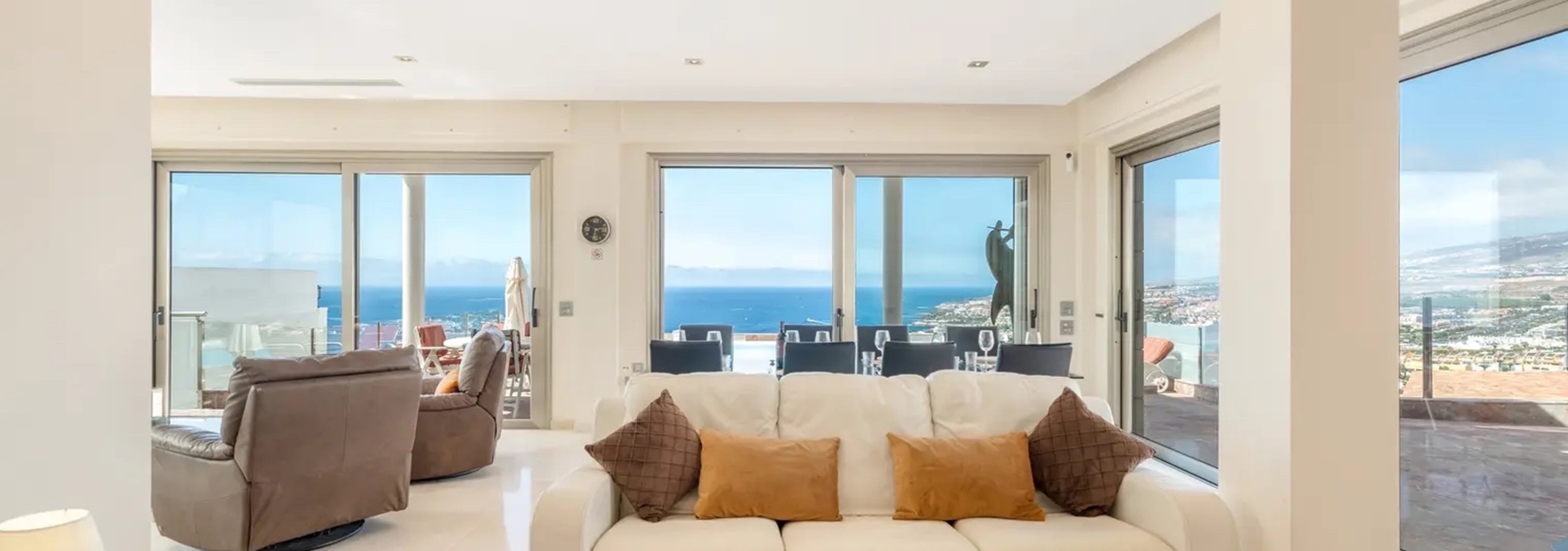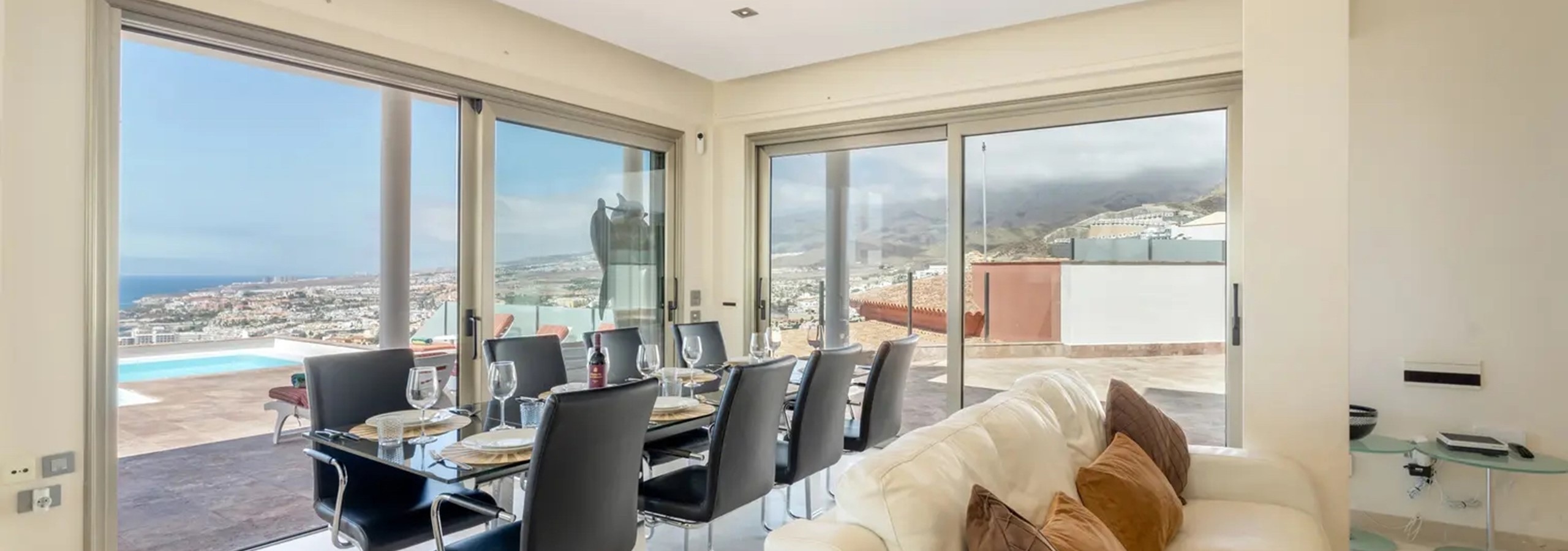 We had the most amazing holiday. The villa can be best described as our paradise for a short period in time. The owners (Russell and Debbie) who don't live in Tenerife could not be more helpful with regards messaging information & suggestions on the villa & Tenerife as a whole. Martin & Vicki the English management team were brilliant. Martin have us a very comprehensive tour that gave us a full understanding of how the villa worked (lights, TV system / movies, music system, kitchen, jacuzzi, gym / spa & security). The WIFI was very fast & great for FaceTiming family in UK. The super king size beds were just so so so comfy. The infinity swimming pool was surprisingly quite warm & just at a perfect temp for us women. Vicki changed linen within hours of our request. To be honest the villa was just perfecto. Apart from everything else the most memorable memory will be the Uninterrupted views by day & breathtaking after dark . Perfectly positioned looking out over the Atlantic Ocean & with the most amazing sunsets. We cannot wait to return next year.....