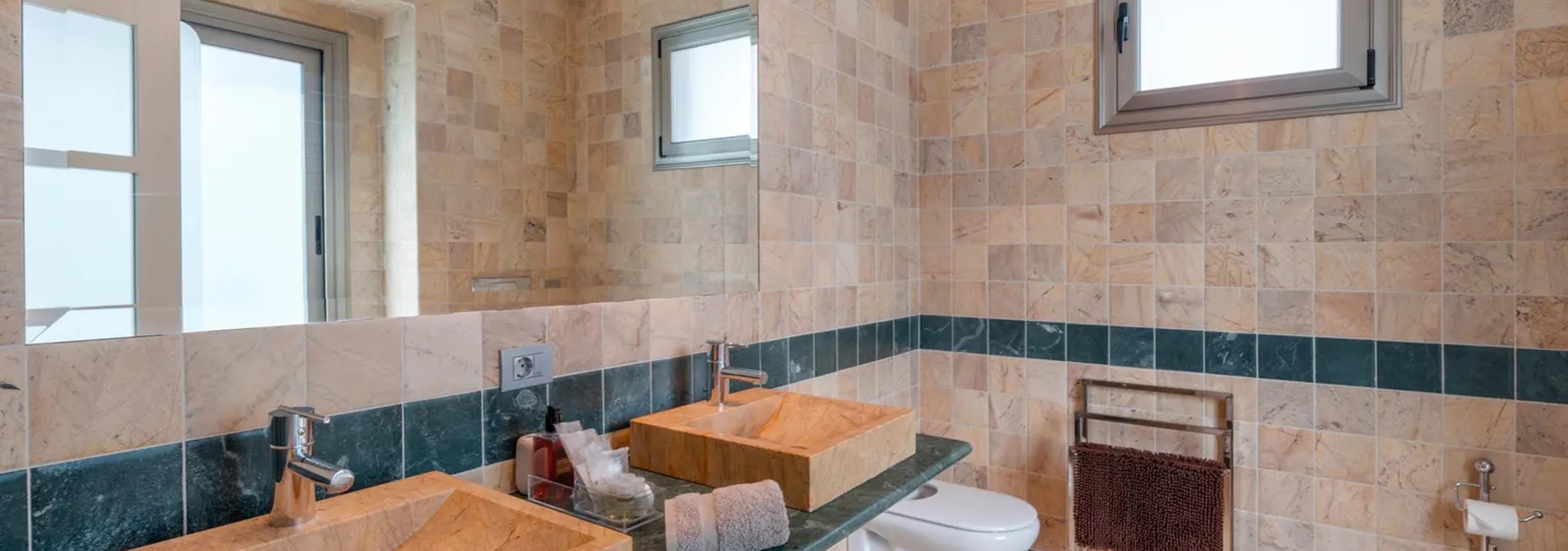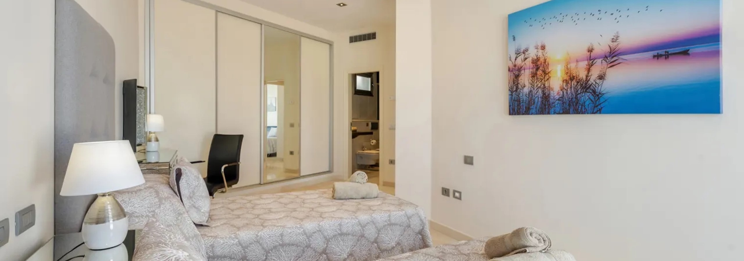 - Two Bedroom Suites: one featuring twin single beds, the other a Super King bed, both with luxurious en-suite bathrooms.