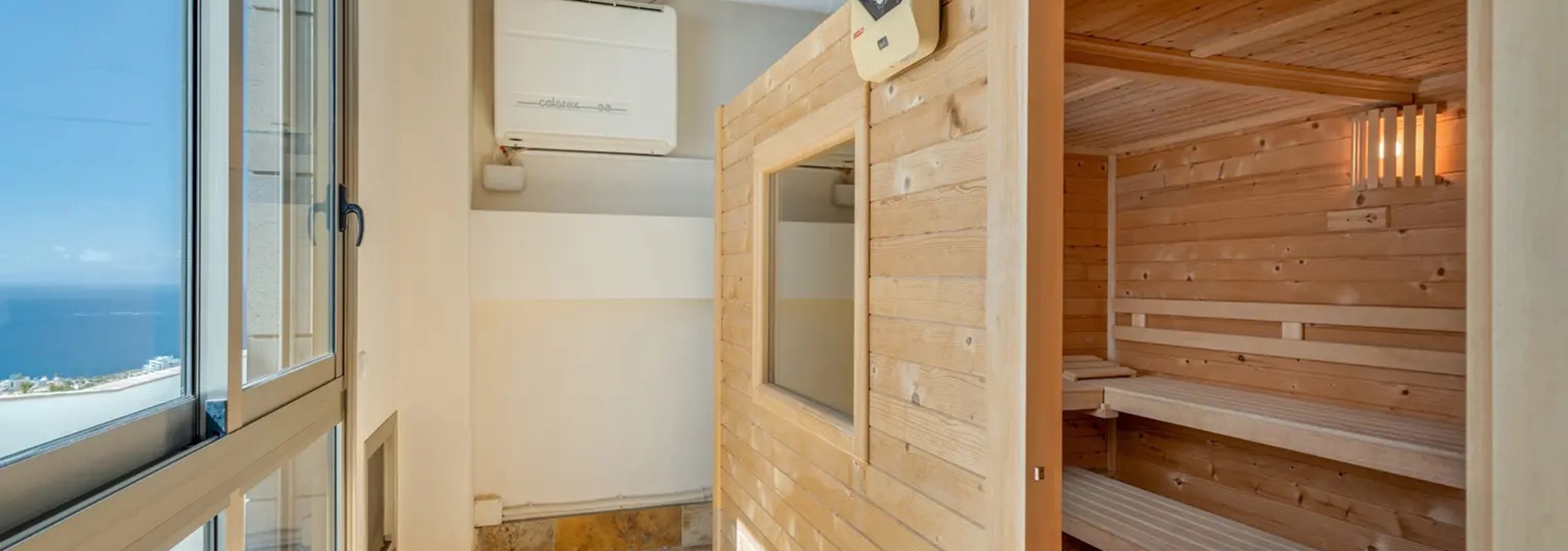 The villa - Wow.....What a view. I don't think that you would ever tire of waking up to that! The pictures on the website were very accurate, although they could never fully do the villa justice. All bedrooms were very comfortable, and the living space was just right for us. The gym area is so much bigger than we were expecting! We made use of the facilities in the gym on most mornings and finished with a refreshing sauna. There is a music system built into the villa and speakers in nearly every room. You just need a phone with a headphone socket and you'll have your own music all round the villa. This includes speakers outside on the terrace/pool area.