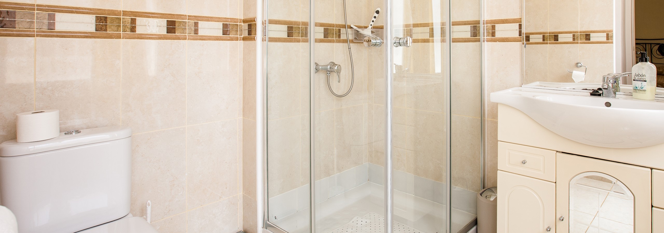 This was a nice villa with a good amount of space. One large master bedroom on the ground floor with an en-suite bathroom, and two twins and a double upstairs with two further bathrooms. It was well equipped with everything we needed for our stay. The pool is a decent size and there is a large outdoor cooking area including sink, a great gas BBQ, and a fridge. We were able to park our car in the gated driveway. It was in a nice quiet area of town with a couple of nice bakeries/cafes, and a pizza place close by. The agency staff who met us were very friendly and helpful, spoke perfect English and were easily contactable via WhatsApp if needed.