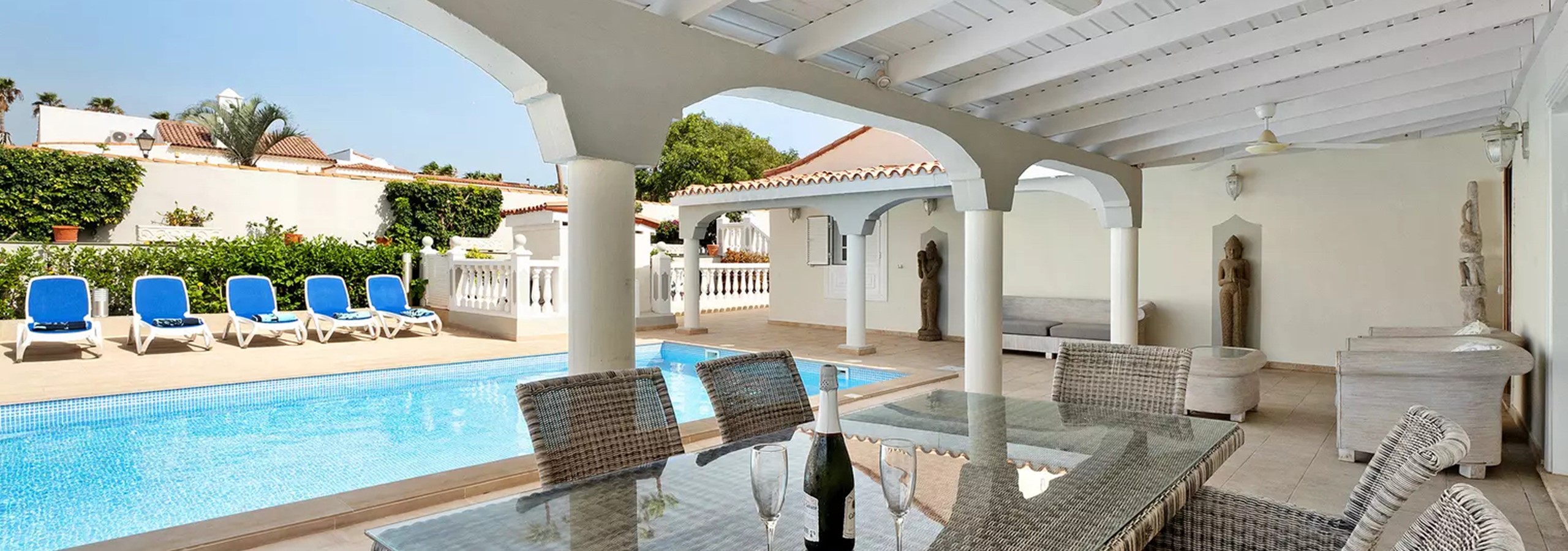 Just returned from 10 nights in Tenerife and after carefully considering our villa, we settled on Casa Suenos. What an amazing villa! Large rooms all around with full amenities throughout. Not one but TWO pools and both were lovely and warm - Day and night! Great security for the kids too with an internal alarm should you wish to set it and a key needed to both enter and exit the property - perfect peace of mind. A stones throw from the golf course if you wish and less than 10 minutes walk to San Blas where you will find multiple, shops, bars and restaurants. David the agent never hassled us once but was on hand within 2 rings if we required anything or some friendly information. Airport is within 15 minutes and watching the planes approach when lying out in the pool or sun loungers was heavenly. 10/10!