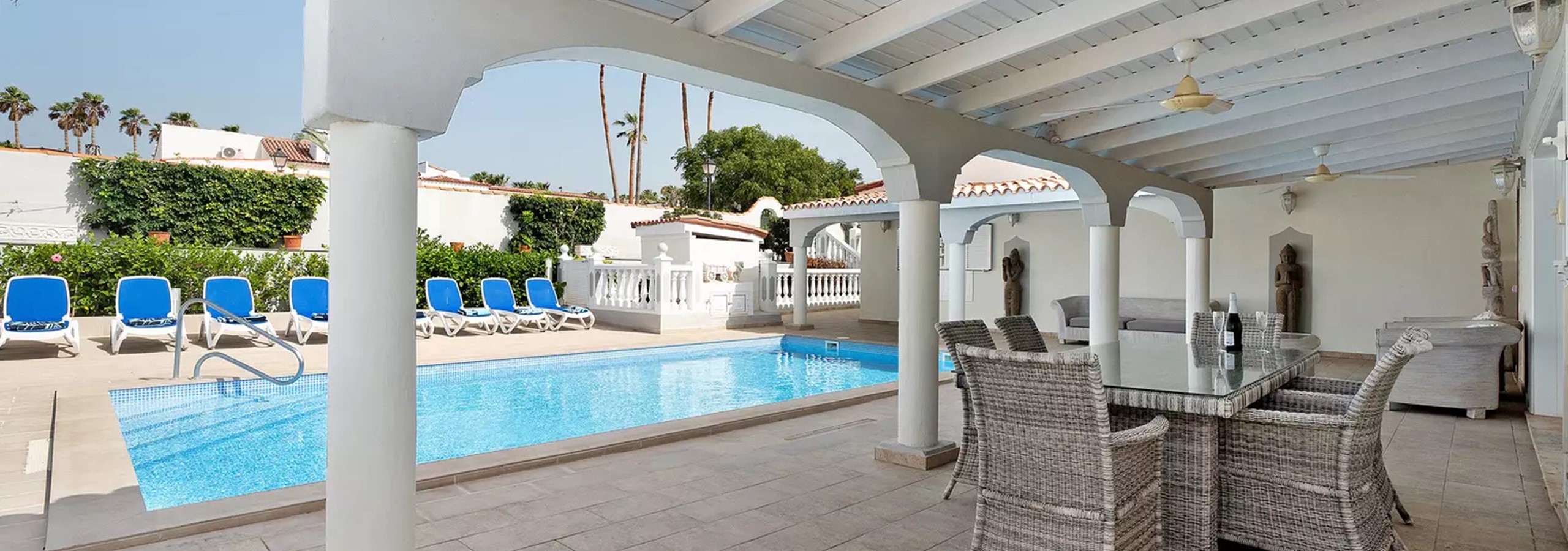 Had a great family holiday here in July/August 2025. Amazing villa it is huge , the kitchen is unbelievable and more than equipped for everyone. Bedrooms all ensuite except 2 with great bathrooms. Fantastic main pool great size and excellent for everyone to relax or just play in. Didn't use the smaller one as no need. Played some table tennis had a BBQ brilliant 2 weeks. San Blas is only a short walk with bars and restaurants and a supermarket. Highly recommend Amarilla Golf if you fancy 18 holes ⛳️ What can be improved….. A lot of space not being used around the pool where a pool table could be put to add that extra little bit of fun. Internet was iffy but apparently just needed a reboot. All in all would highly recommend this villa for a family holiday. David was always on hand if needed just a message away.