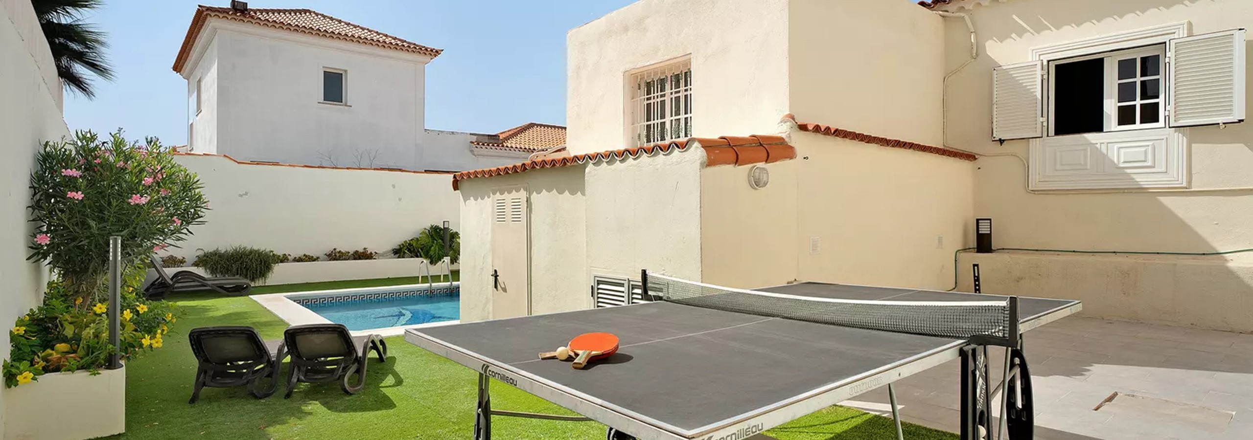 For those who enjoy active pursuits, the villa features a table tennis area, providing hours of entertainment for guests of all ages. Additionally, there are two swimming pools on the premises: one located at the front of the villa, which is heated for year-round enjoyment, and another at the rear. Whether guests prefer to take a refreshing dip or simply lounge by the poolside, they have ample options for recreation and relaxation.